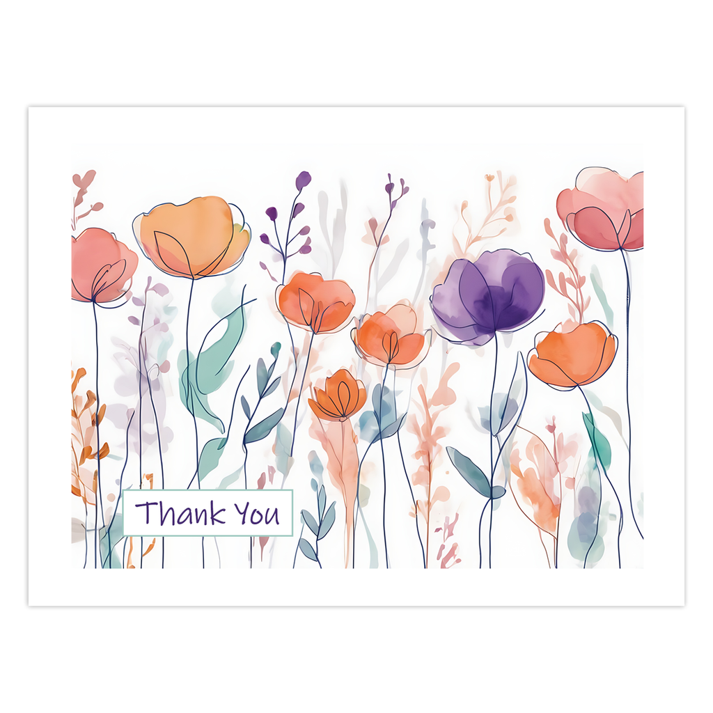 Express gratitude with our vibrant Purple and Orange Flowers Thank You Card. High-quality, pre-folded, and packed in sets of 10 with envelopes, these cards are perfect for memorable appreciation. #Gratitude #ThankYouCard #StationeryDesign